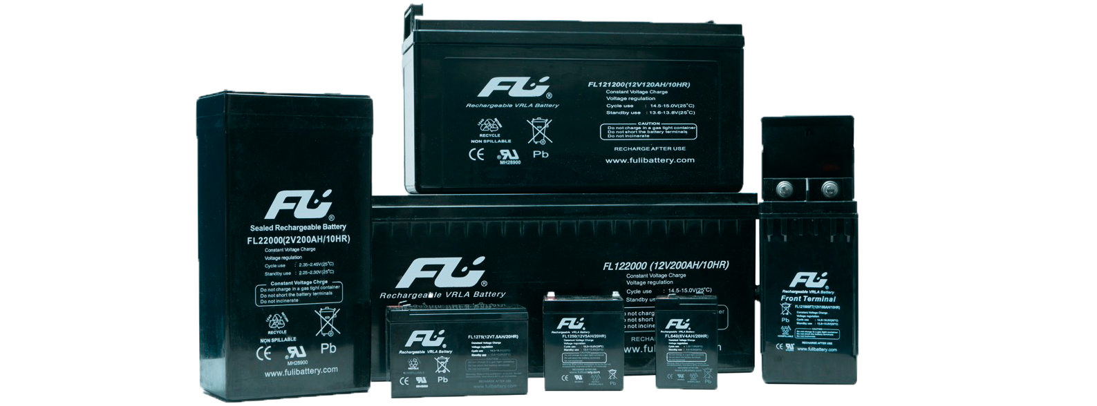 Las baterías Fulibattery de alta gama son de excelente calidad, fiabilidad, eficiencia y duración al mejor precio. Diseñadas y fábricadas con la última tecnología de material absorbente, compuesto por fibra de vidrio (AGM) y selladas con válvula auto - regulada (VRLA) garantizan el mejor desempeño y rendimiento en UPS, sistemas de alarmas, telecomunicaciones y uso eléctrico en general. Debido a su construcción, no requiere ventilación, se pueden montar en cualquier orientación (excepto con los bornes hacia abajo) y no precisa un mantenimiento constante. La ventilación reducida es una ventaja, ya que se pueden utilizar en espacios reducidos o con poca ventilación. La vida útil de las baterías de capacidad inferior a 35 Ah es 5 años; y la de las baterías de capacidad de más de 35 Ah es de 10 años. Estas baterías cumplen con las normas internacionales como IEC896-2, BS6290-4, la norma de la asociación de fábricantes de batería eléctrica de europa, UL y CE. Contamos con los certificados ISO 9001 e ISO 14001 norma para protección ambiental, garantía extendida hasta 24 meses, la cubierta de ABS de esta serie de baterías tiene un grado retardante al fuego V0.